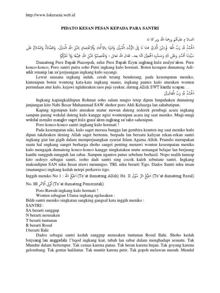 "lulusan pesantren tidak cuma bisa jadi guru mengaji ataupun kyai! Ayam yang bertelur, sapi yang punya nama. Studi validitas hadits tentang ilmu pengetahuan dalam buku pendidikan agama islam dan budi pekerti kurikulum 2013 abstrak: Hari ini tahun ketiga keluarga besar nahdlatul ulama dan seluruh rakyat indonesia memperingati hari santri. Bahkan sebagian ulama berpendapat bahwa 70 persen keberhasilan santri dikarenakan adabnya, 30 persen karena kesungguhannya. Demikian pidato saya tentang menuntut ilmu semoga bermanfaat bagi saya khususnya dan bagi kita semua pada umumnya. Beda pendapat ulama tentang kadar khamar dan minuman memabukkan lainnya. Mencari ilmu para santri de ngan bertempat. Ia mengawali percakapan dengan salam. Masih menjadi rujukan kita hingga hari ini. Contoh teks pembawa acara resmi. pidato santri pada fasi festival anak sholeh indonesia an nahdly. @masrawy.com) dalam proses menuntut ilmu termasuk ilmu agama, kita mesti menghormati guru kita agar ilmu yang diajarkannya dapat bermanfaat dan berguna di dunia dan di akhirat.