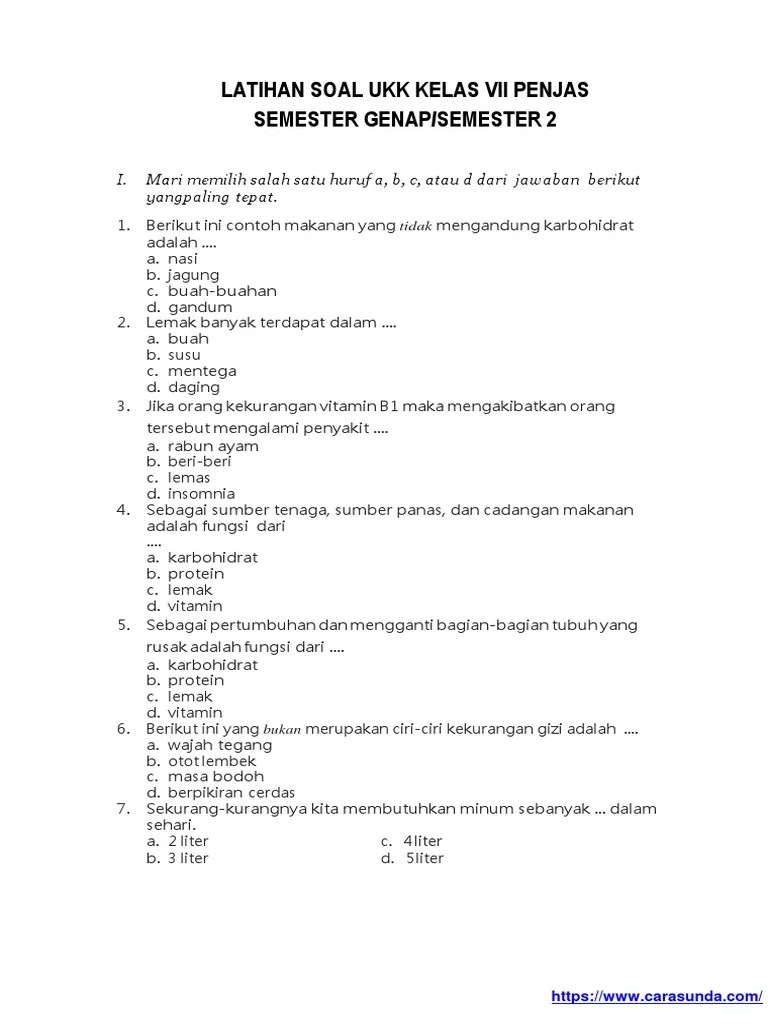 Soal ini merupakan soal ulangan kenaikan kelas dari mata pelajaran pendidikan jasmani dan kesehatan atau pjok untuk adik adik kelas vii smp/mts, soal ini sudah .
